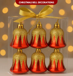 Christmas Red Bells with Golden Glitter Decoration – 6PC