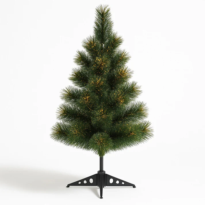 FEATURES –Standing at a cozy 3 feet, the Pine Tree boasts branches adorned with golden tips, adding a touch of glamour and sophistication to the classic greenery.