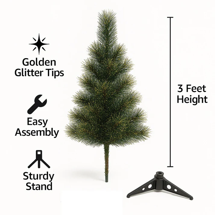 Inside the pack – This package contains – 1 PC Pine Tree with Golden Tips – 3FT