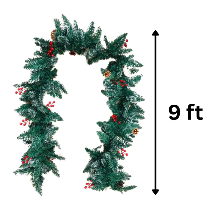 Christmas SnowTop Cherry & Pine Garland – 9FT