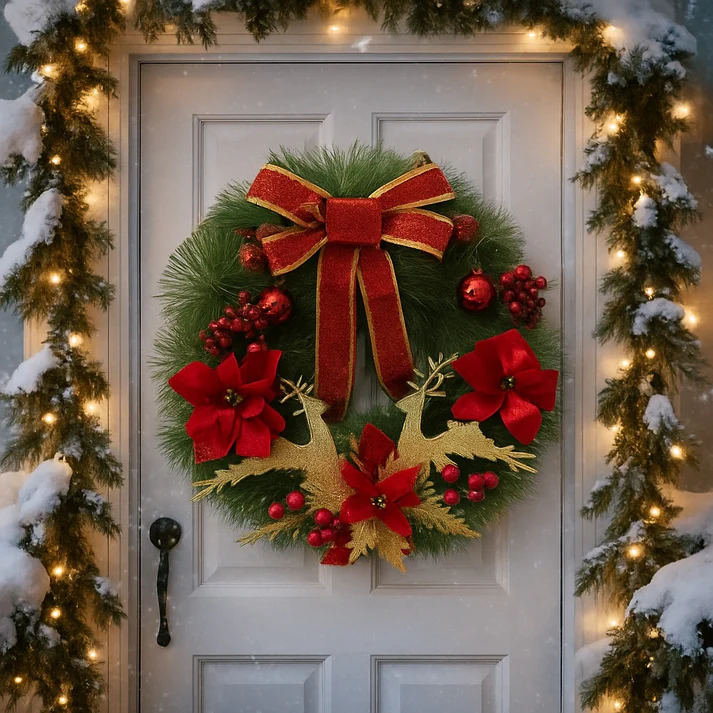 Perfect for Doors, Windows, Walls & Party Decor: Lightweight and easy to hang, this wreath is ideal for front doors, interior walls, windows, hallways, fireplaces, office entrances, party venues, and Christmas event décor. It instantly elevates any space with holiday spirit.