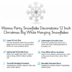 Large 12-Inch Snowflake Decoration: This big, beautifully crafted foam snowflake adds an elegant winter touch to your holiday décor. Its classic white design makes it perfect for Christmas trees, windows, walls, parties, and seasonal displays.