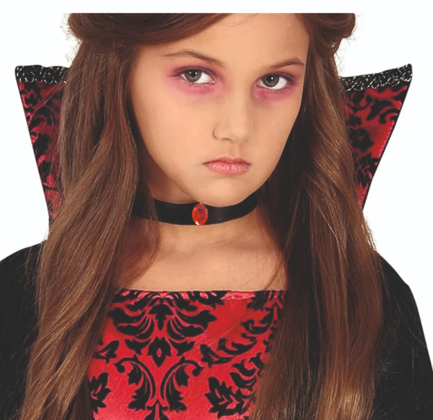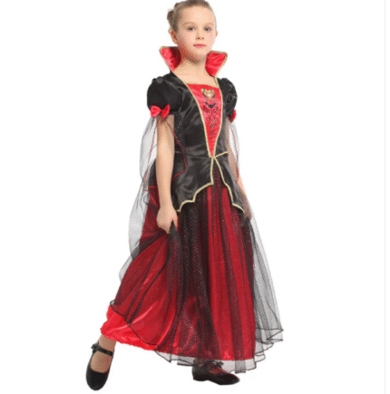 Let your little one embrace her dark side in style with the Scarlet Vampire Queen — hauntingly beautiful and royally spooky!