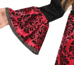 High stand-up collar and flared sleeves for a dramatic vampire silhouette