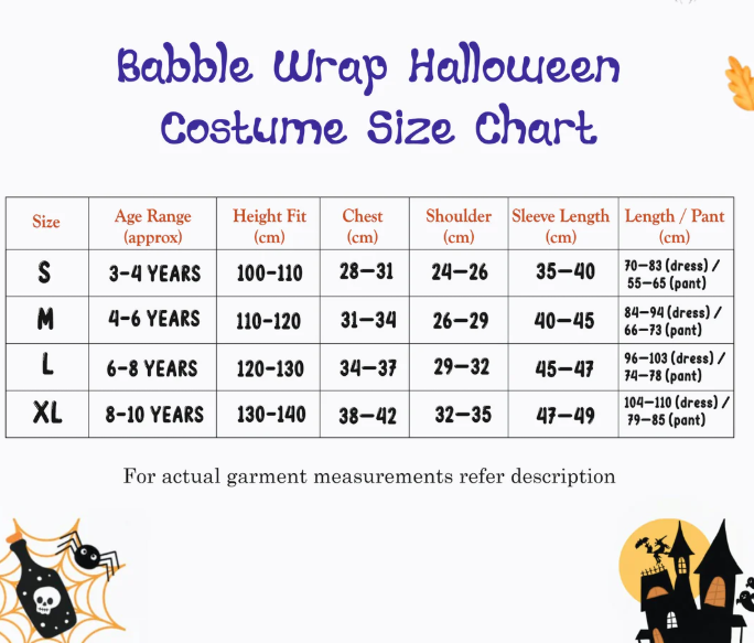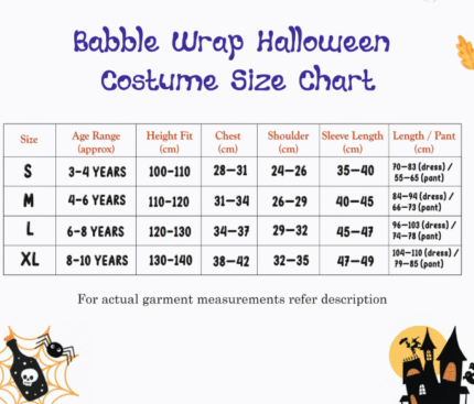 XL (8–10 yrs): Length 104 cm | Sleeve 47 cm | Chest 34 cm | Shoulder 30 cm