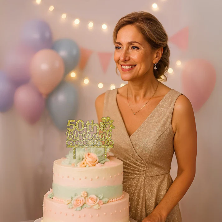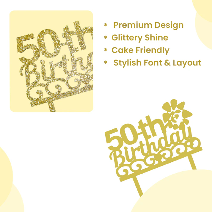 Reusable Keepsake: Designed to be durable and eye-catching, this cake topper can be gently cleaned and reused or kept as a special memento from your 50th birthday celebration.