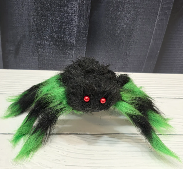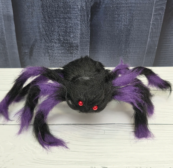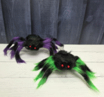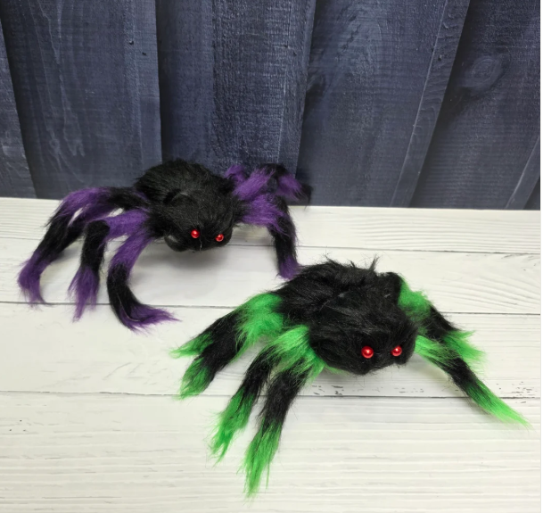 Double the fright with this spooky set of 2 Haunted Tarantulas! Each spider features a furry black body, glowing red eyes, and bold, colorful legs—one in toxic green and the other in witchy purple. Their bendable legs allow you to pose them crawling, clinging, or lurking in dark corners for maximum scare effect.
