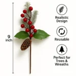Realistic Winter Design: Each pick is coated with a soft frosted finish to mimic freshly fallen snow. The combination of red berries, pinecones, and textured faux pine needles adds a charming, wintry touch to your holiday decorations.