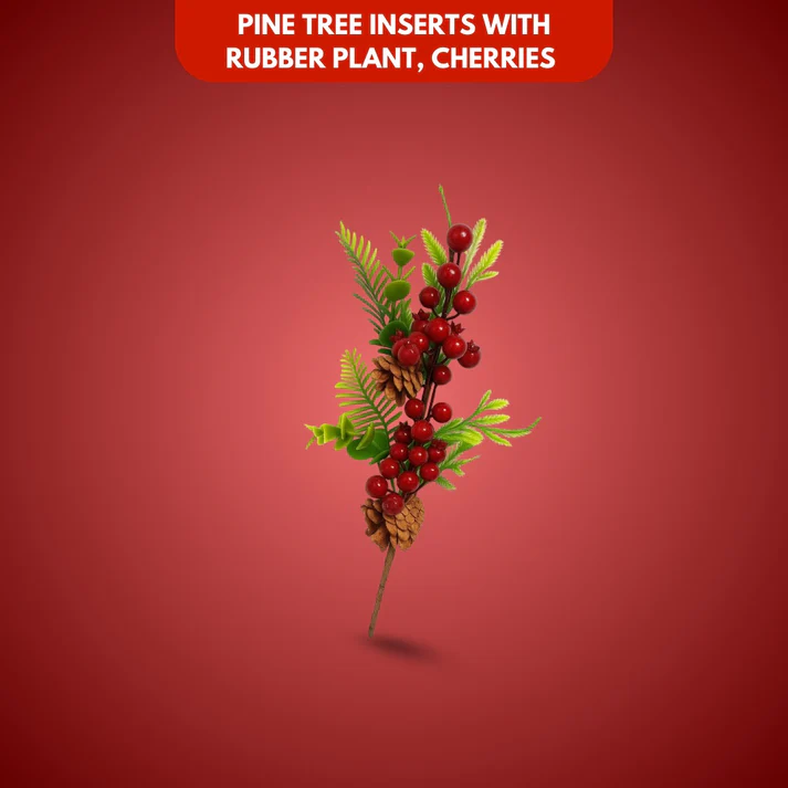 Pine Tree Inserts with Rubber Plant, Cherries and Pine Cones – 1PC