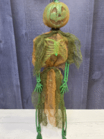 Turn your Halloween into a nightmare harvest with the Pumpkin Head Skeleton – The Jack O’ Reaper! Featuring a sinister jack-o’-lantern head, eerie skeletal frame, and ragged layers of orange and green tattered gauze, this terrifying figure looks like it has risen from a cursed pumpkin patch. With its creepy grin and ghostly robes, the Jack O’ Reaper blends harvest charm with bone-chilling horror.
