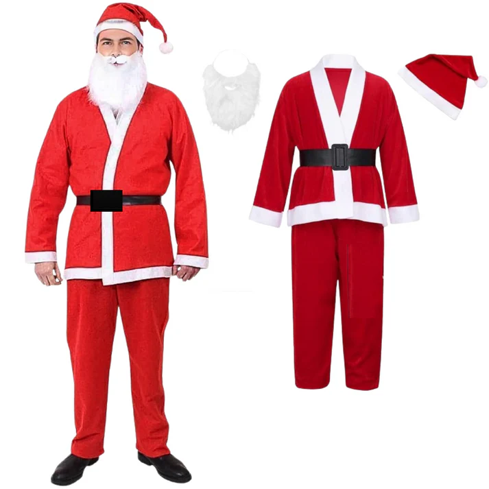 HIGH -QUALITY】Our Velvet High Quality Santa Claus costume includes the essential five-piece set, hat, beard, top, belt, and pants. Reduce some unnecessary accessories to help you save time to wear as well as unnecessary spending.