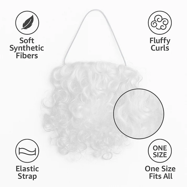MATERIAL:This Santa beard is made of durable synthetic fibre with an elastic band, lightweight and easy to wear.