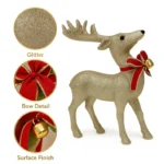 Elegant 9-Inch Champagne Gold Glitter Reindeer Figurine: This beautifully crafted reindeer decoration features a luxurious champagne gold glitter finish that adds sparkle and sophistication to your Christmas décor. Its refined standing pose brings a festive yet elegant charm to any holiday setting.